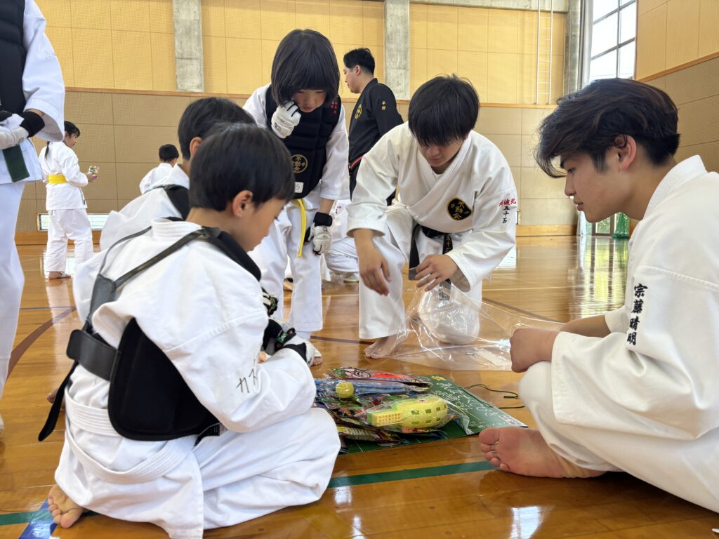 ・試合時間は1試合1分間。ローテーションで相手を変えて組手を行います。